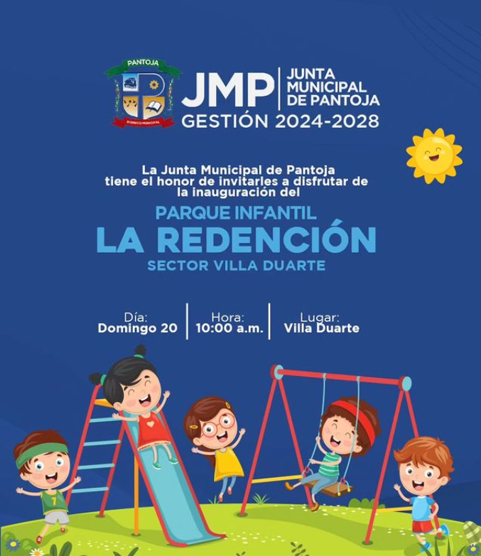 Desde la Junta Municipal de Pantoja hemos habilitado un espacio para el disfrute y crecimiento de nuestros niños, niñas y adolescentes. Por eso, invitamos a todas las familias de la comunidad y zonas aledañas a ser parte de esta gran inauguración.
