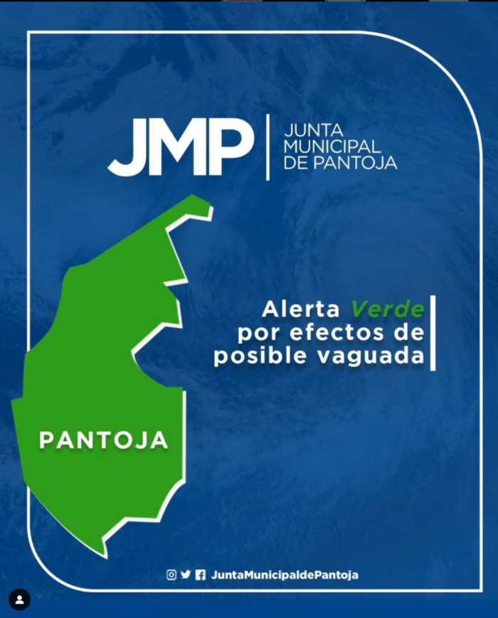Nuestro Distrito Municipal de Pantoja es declarado en alerta verde, tras los avisos de precipitaciones, por los efectos de una vaguada que incide sobre todo el territorio nacional.