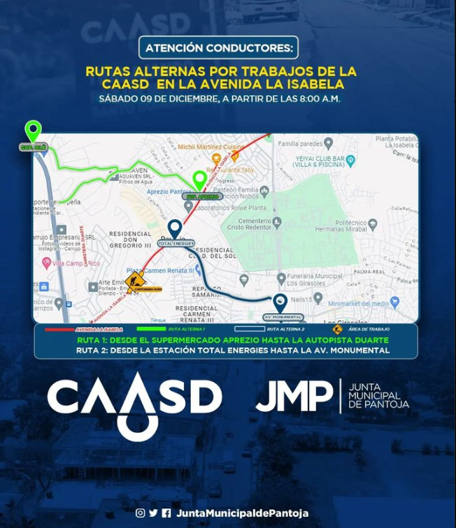 Este sábado 9 de diciembre, la @CAASDRD estará dando continuidad a los trabajos de colocación del agua potable en nuestro distrito municipal.