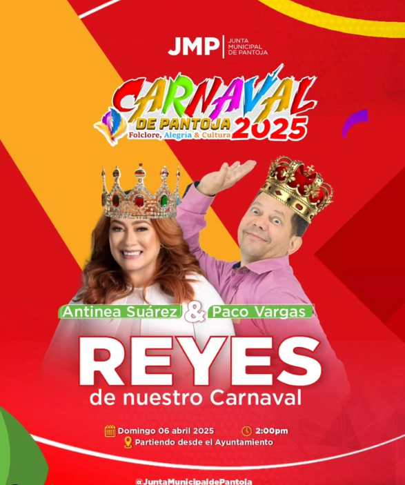 ¡Dos grandes artistas de nuestro país nos acompañarán como Reyes del Carnaval de Pantoja 2025! 🎭🎉