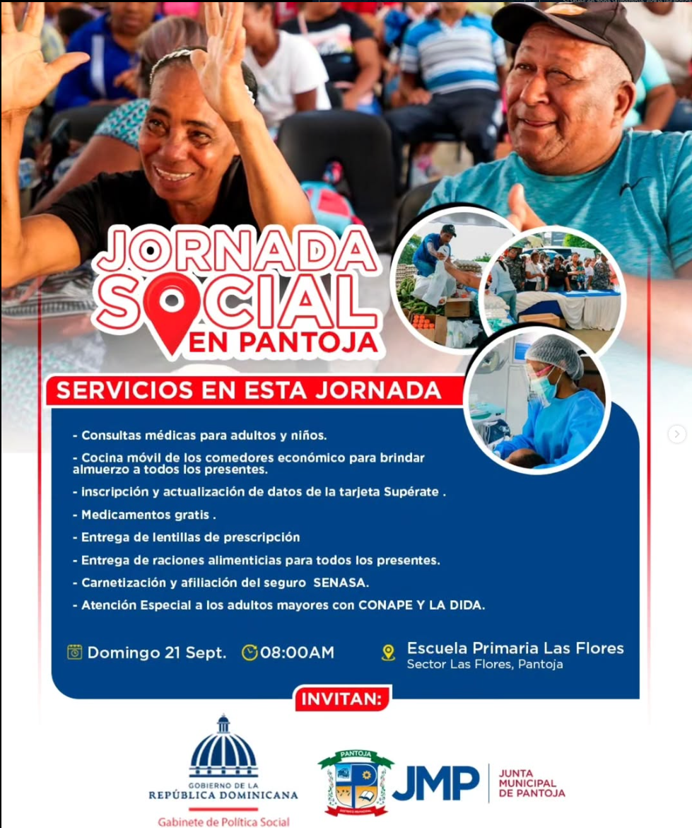 - Gracias al apoyo del @GabSocialRD, este domingo contaremos con consultas médicas, cocinas móviles de los @ComedoresRD, inscripción y actualización de los datos para las tarjetas @Superaterdo, medicamentos, entrega de canastillas para embarazadas y otros servicios en beneficio de nuestra gente.