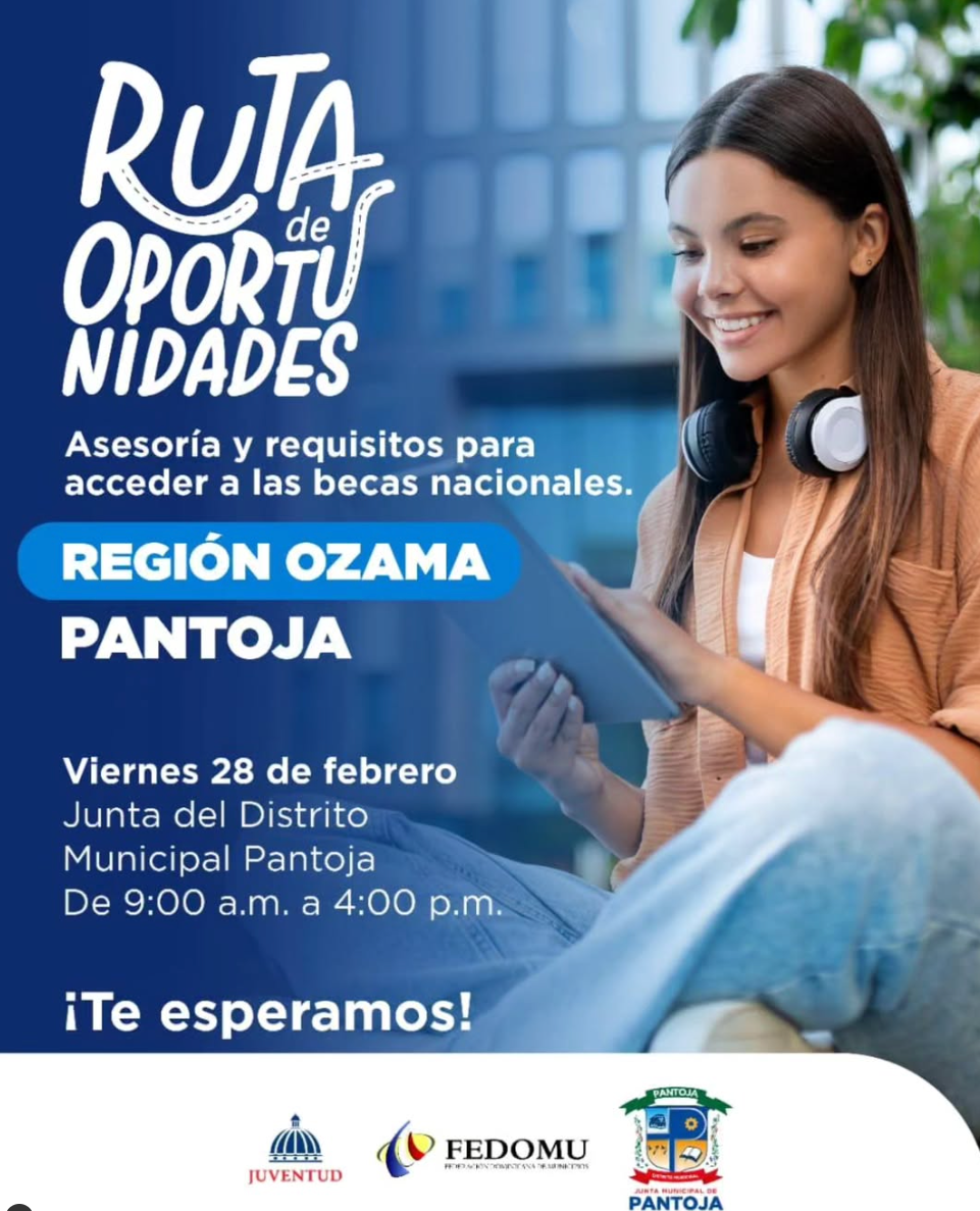 Este viernes 28 de febrero, desde las 9:00 am hasta las 4:00 pm, el Ministerio de la @JuventudRD estará en el edificio de nuestra junta distrital para facilitar el acceso a las oportunidades educativas del Gobierno y conectar el talento joven con las becas nacionales que pone a disposición la @mescytrd.